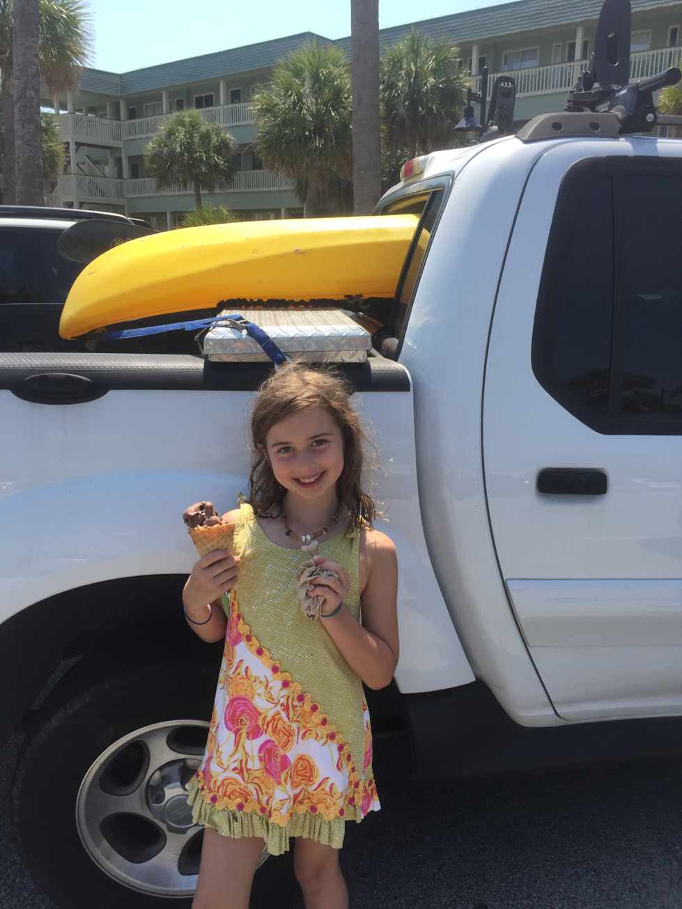 She leaves the island with a tummy full of the largest waffle cone filled with ice cream and her new necklace!